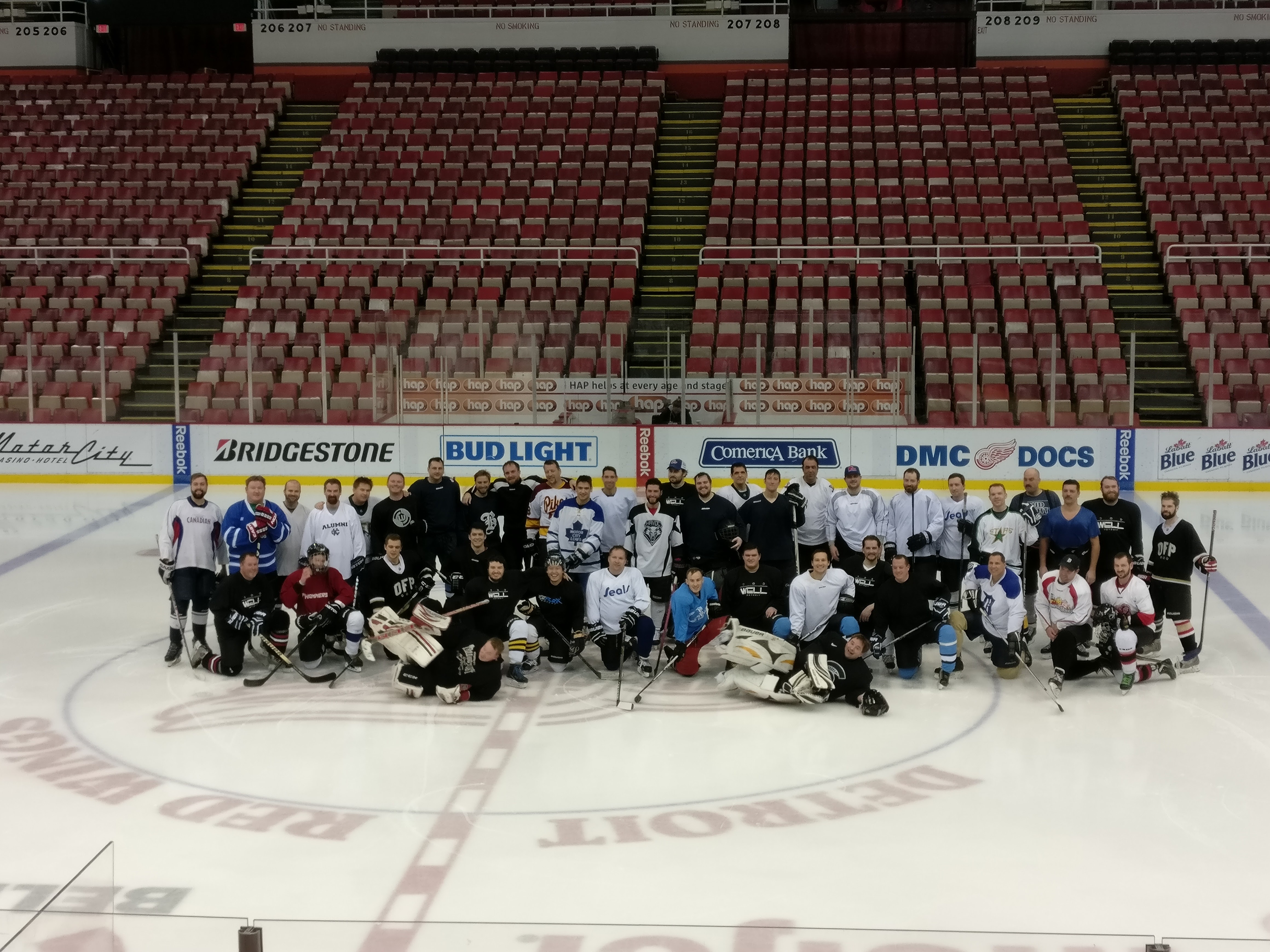 Our year starts with our annual draft where we all get together and watch the teams come together, a September to March Fall/Winter Season, capped by a Wildcard week, and then a 3-game semifinals series and 3 game-finals series (that we stream on Twitch every year with full Play-by-Play and Color Commentary). After that, we have people vote for all-stars , as well as yearly awards (that we call the Dickies after our ghost writer Dickie Dunn), and then we have an All-Star Game (and the correlating "Bender Bowl" for those who weren't voted in as an All-Star) at some unique location. We've skated at Joe Louis Arena, Little Caesars Arena, the Belfor Center (where the Wings practice), Michigan's Yost Ice Arena, Michigan State's Munn Ice Arena, and several outdoor rinks for events like this. Then we cap off our season with the annual Dickies, where we dish out the winners of the Dickies, as voted on by their peers, have a few charity raffles, and have a general end-of-year party.