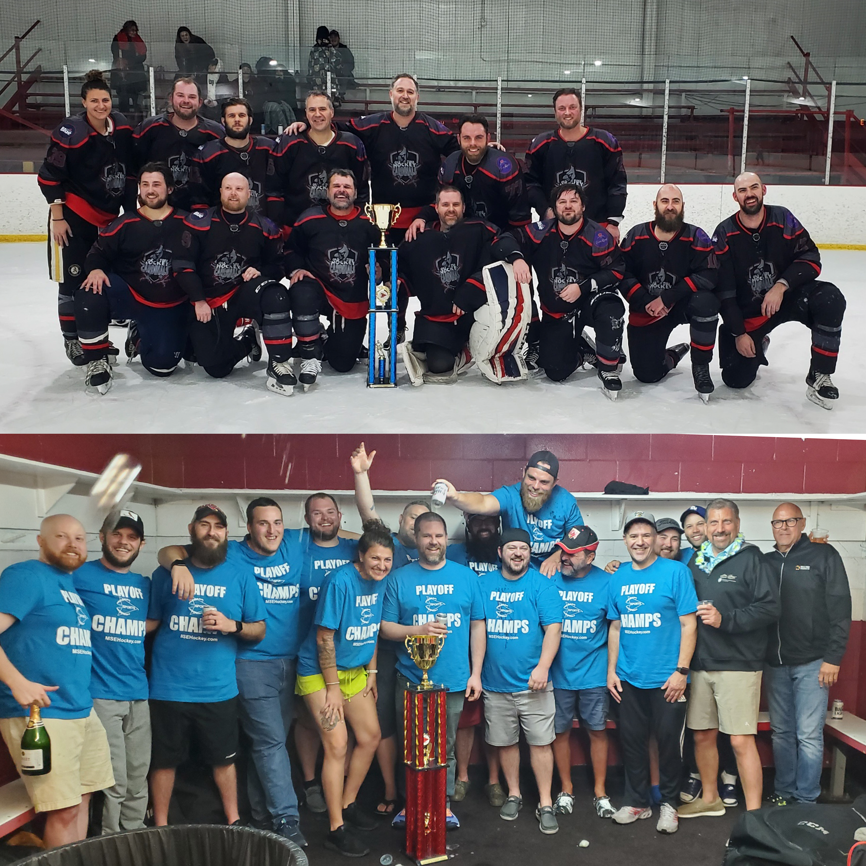 The Cardinals Beer League team was formed 21 years ago by the fathers of my youth team (also called the Cardinals). Although the roster has evolved over those years, the two things that have always remained the same are our sense of family and love for hockey. The outcome of the game does not matter to us. The thing we look forward to most each week is sharing some ice-cold Labatt and stories in the locker room after the final horn blows. Our team motto is “If we win we’ll have a beer. If we lose… we’ll have a beer.”