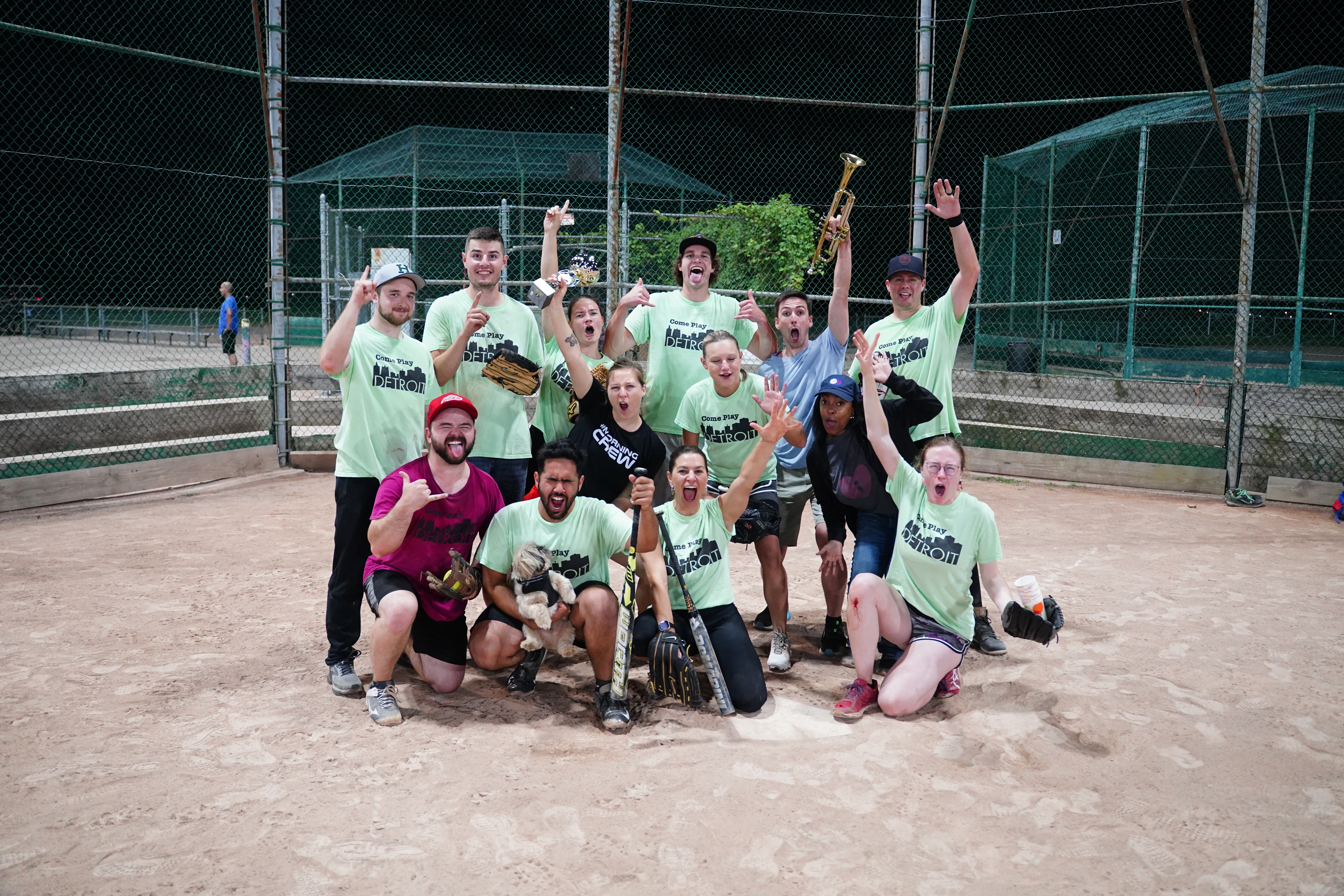 Our team colors are Forest Green, Flamingo Pink, and Home Plate White. Favorite Labatt brew is the one in our hands! We regularly go to a local bar after our games and enjoy a cold beer.