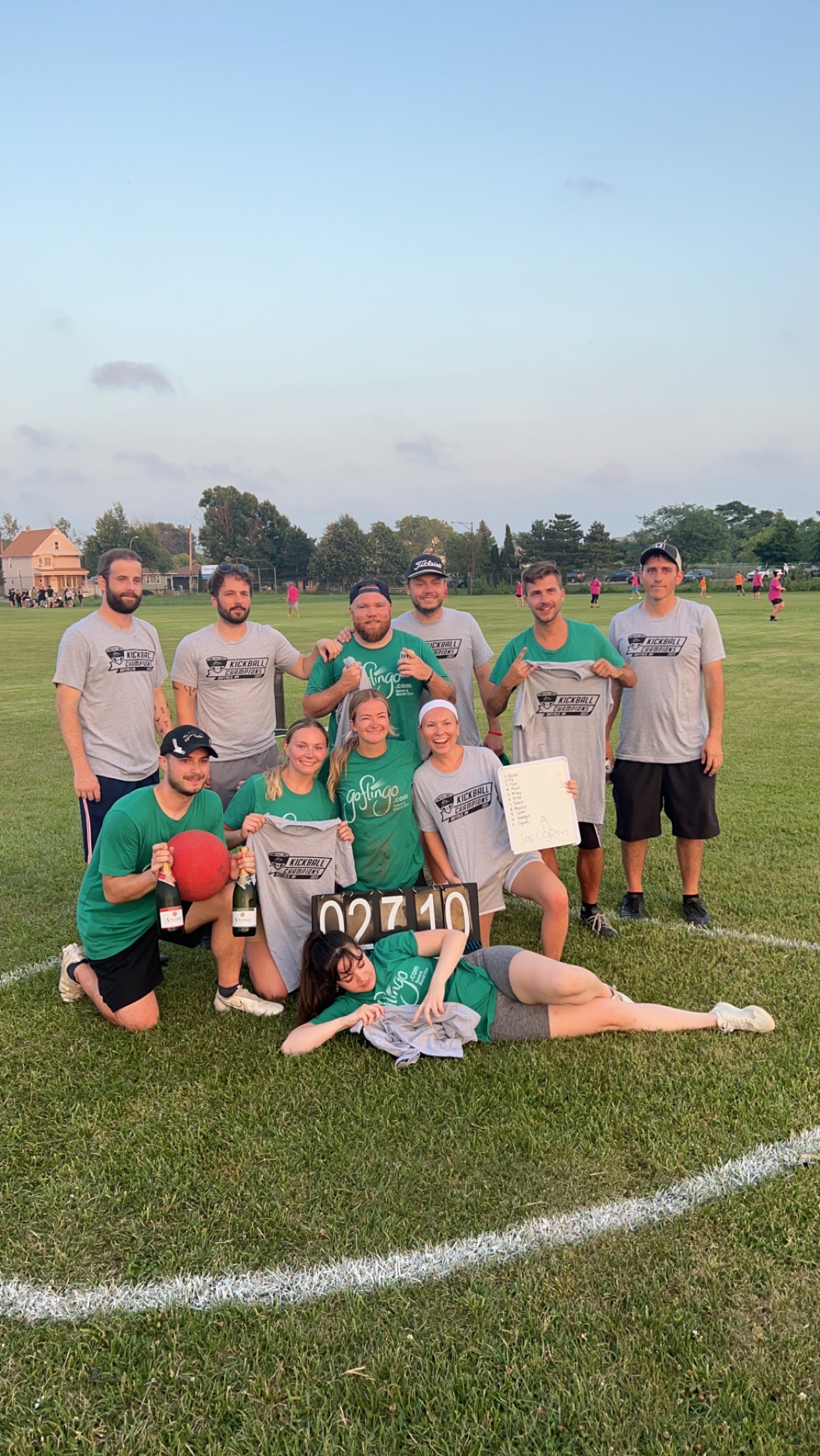 Our band of kick ballers have been together for 4 years. We are 2 time champions of this league and we bring the blue lights to every game. We get a new team color every year but we “dominated” in green. One of the best parts after a win is when our very own Uncle Buddy does a post game write up that puts national journalists to shame