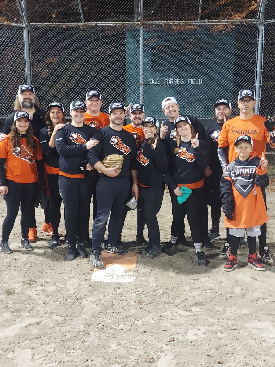 Our softball team, The Thrillers, is excited to be celebrating our 11th year together! Since forming in the fall of 2014, our team has not only grown incredibly close but has also recently achieved our fourth championship, a testament to our dedication and teamwork.