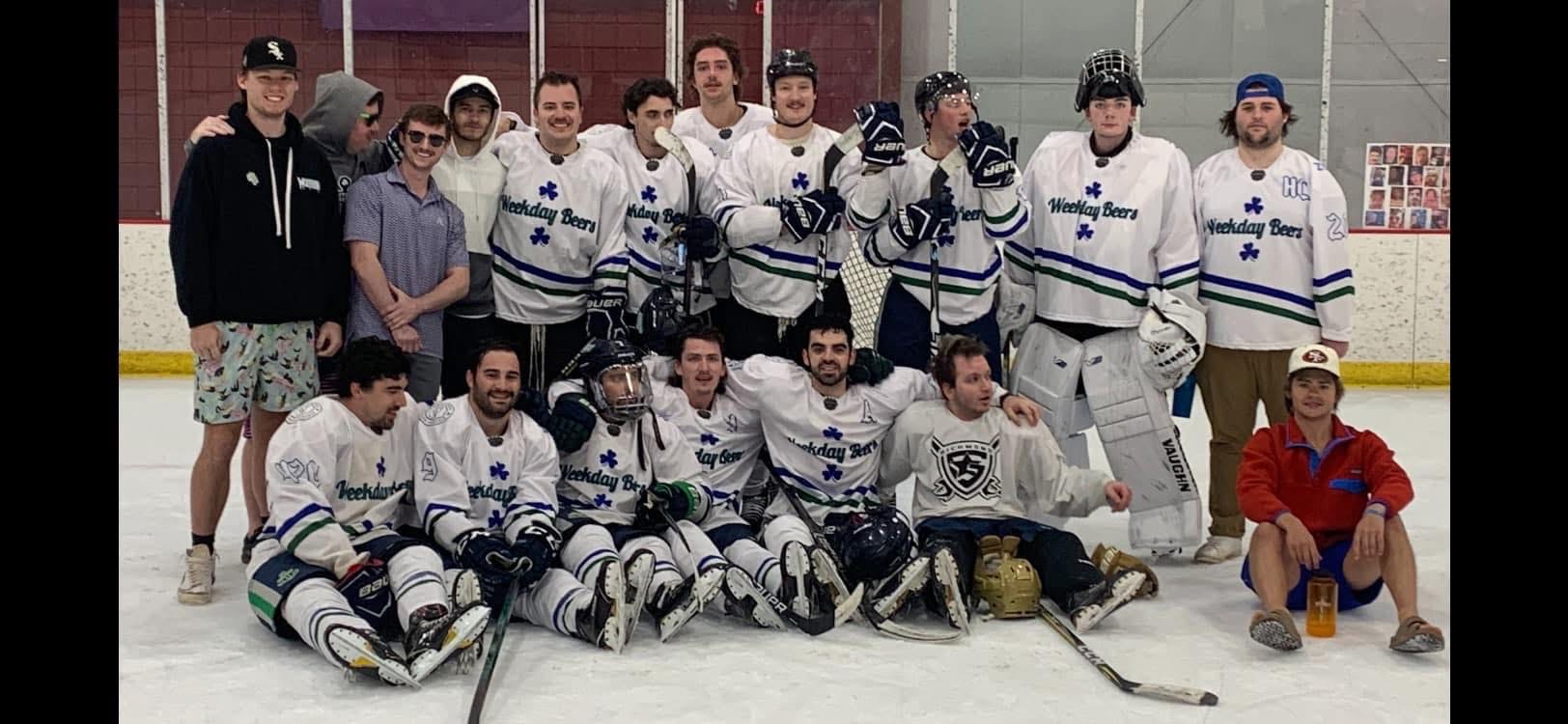 We’ve been together for 4 years, this being the 5th. Started as a couple friends playing hockey during our college offseason, and grown to become friends with others through connections within the team. Our colors are green and blue, and our favorite beer is Blue Light!